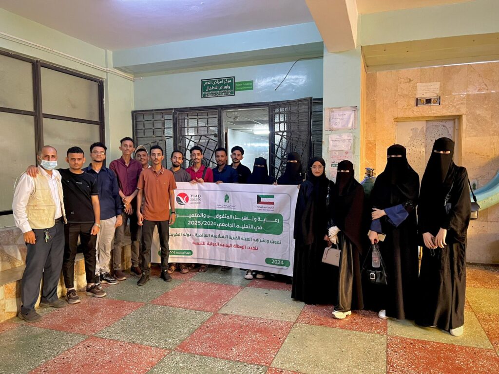 في إطار جهودها الرامية إلى تعزيز الوعي المجتمعي وربط التفوق الأكاديمي بالمسؤولية الإنسانية، نظّمت الوكالة اليمنية الدولية للتنمية، ضمن أنشطة مشروع رعاية المتفوقين، مبادرة إنسانية مميزة في محافظة عدن، تمثلت في زيارة طلاب المشروع إلى مركز أمراض الدم وأورام الأطفال.