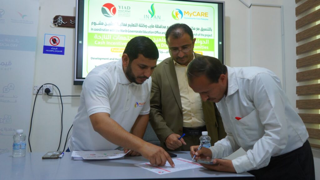 The Yemen International Agency for Development launched the Cash Incentives Project for Teachers in Displaced Communities for the 2025–2026 academic year, as part of its ongoing efforts to support the education sector and enhance the stability of educational staff in displacement-affected areas of Marib Governorate.