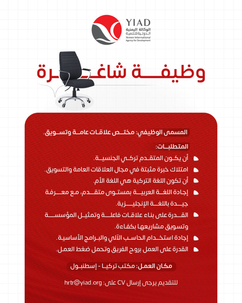 Work Location: Yemen International Agency for Development – Turkey Office, Istanbul