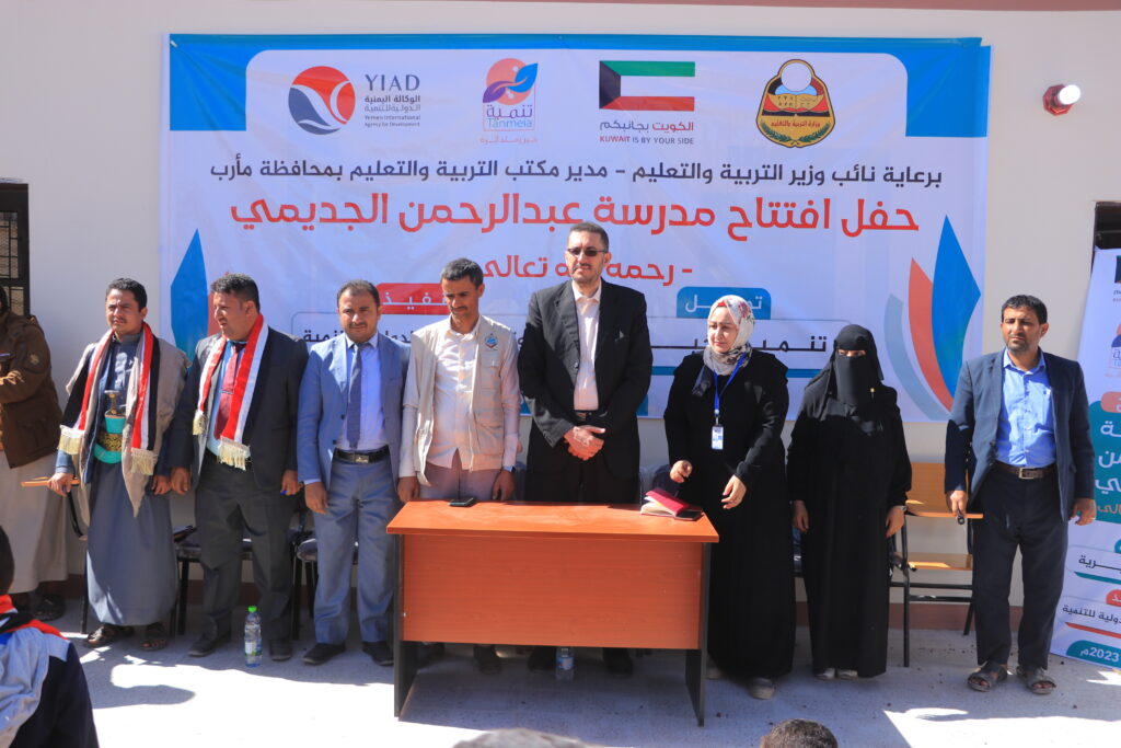 “With the supervision of the Charitable Development Association in Kuwait and funding from the heirs of Abdulrahman Mohammed Al-Judaimi, may he rest in peace, the Yemeni International Development Agency inaugurated the Abdulrahman Al-Judaimi School for Displaced Students in the Sky neighborhood of Marib – Al-Meel area, Marib Governorate. The inauguration was held under the patronage of the Deputy Minister of Education and Director of the Education Office in the governorate.