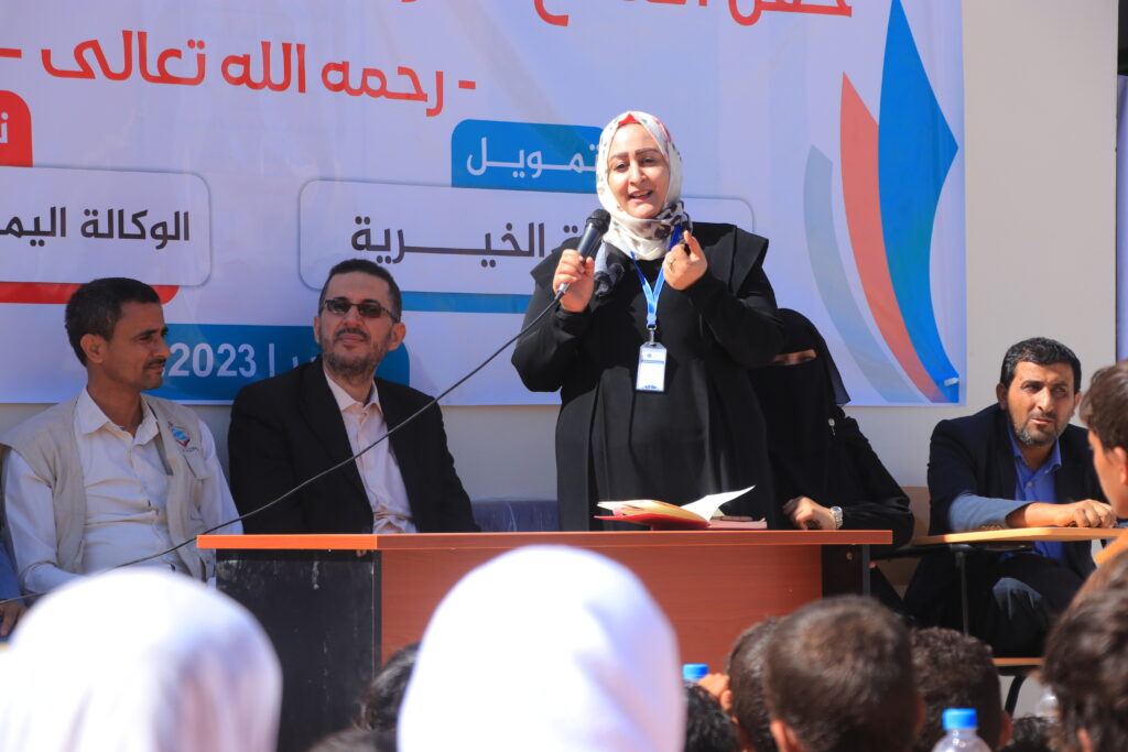 The opening ceremony was attended by Mrs. Beirut Al-Muflahi, the coordinator of the Education Cluster in Marib and Al-Jawf governorates, Mr. Ali Matir, the education official at the Executive Unit for Displaced Persons in Marib, Dr. Jamal Qahtan, the Director of Programs and Projects at the agency, and a large number of parents, guardians, and community leaders.
