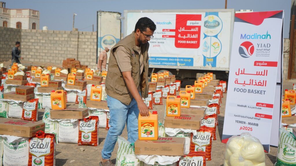 As part of its ongoing humanitarian efforts to support the most vulnerable groups, the Yemen International Agency for Development implemented a relief intervention by distributing 350 food baskets to breadwinner-less families in the City and Al-Wadi districts of Marib Governorate. This intervention aimed to ease the living burdens faced by these families amid difficult economic conditions.
